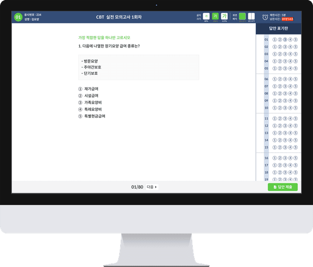 케어파트너 CBT 모의고사에 회원에게는 지속적으로 업데이트되는 요양보호사 CBT 모의고사를 무료로 제공합니다.
